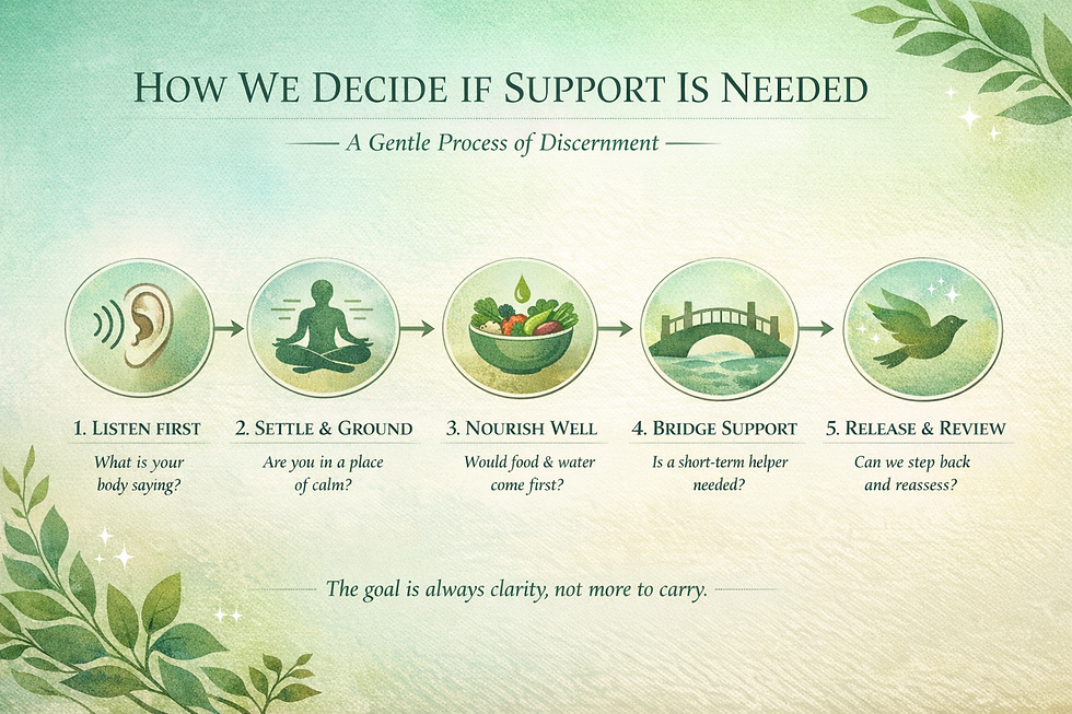 Before adding anything new, we ask: - Is the nervous system settled? - Is the body feeling safe enough to receive support?